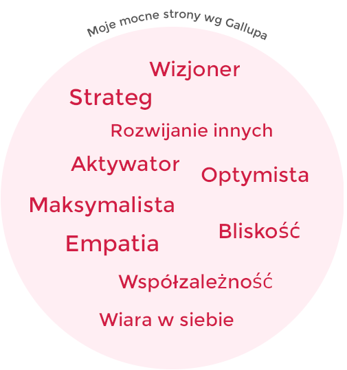 wspieram ludzi słowem – pisanym i mówionym – inspirując ich do śmiałych marzeń i podążania za swoją niepowtarzalną naturą. Kibicuję wszystkim, którzy decydują się na odważny zwrot kursu w stronę życia na własnych zasadach w oparciu o wyznawane wartości. To mnie wzrusza, uskrzydla, daje mi poczucie sensu istnienia.